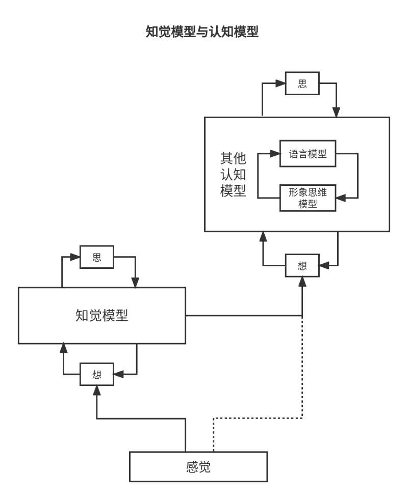 想和思根据感觉建构认知模型,并在此基础上思考。认知模型要和感觉比较,差异太大就改进,反复多次,直到差异小到一定程度,接受这个模型。