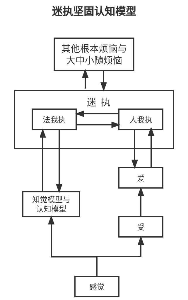 • 错误固化:认知模型中的根本性错误被固化为 迷执(即“人我执”与“法我执”)。