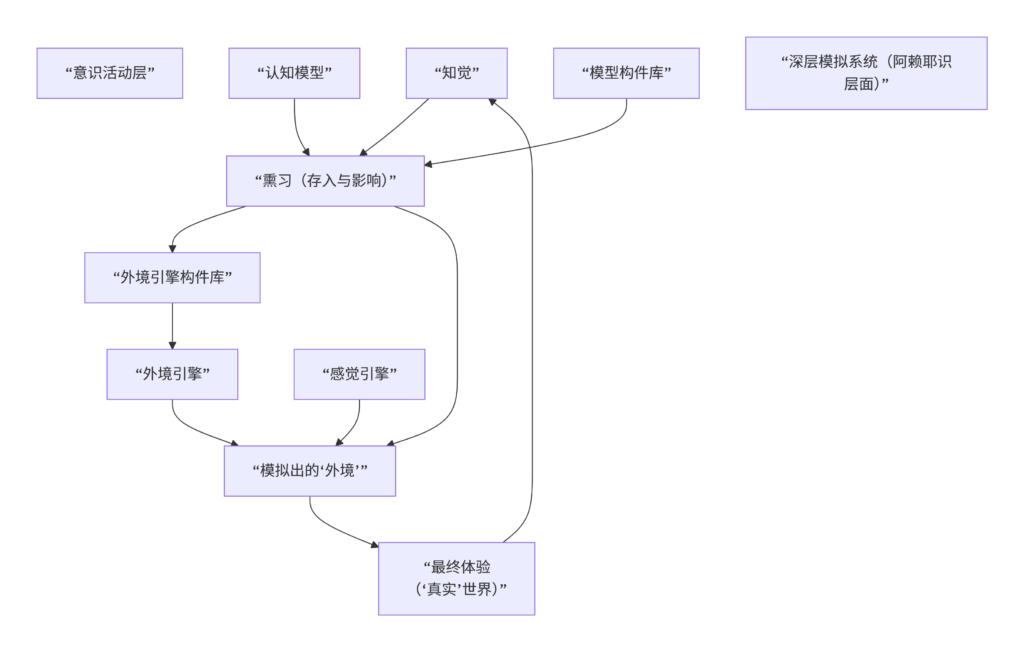 • 外境引擎 / 感觉引擎 / 知觉引擎及构件:这是将种子渲染为体验的 “模拟器” 。它依据固有规则和构件,自动化地生成 “感觉”(初步数据)并进而形成 “知觉”(成型的直接体验)。
